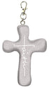 Cross-Keychain-Comforting Clay-Faith-Gray Crackle (3" H)